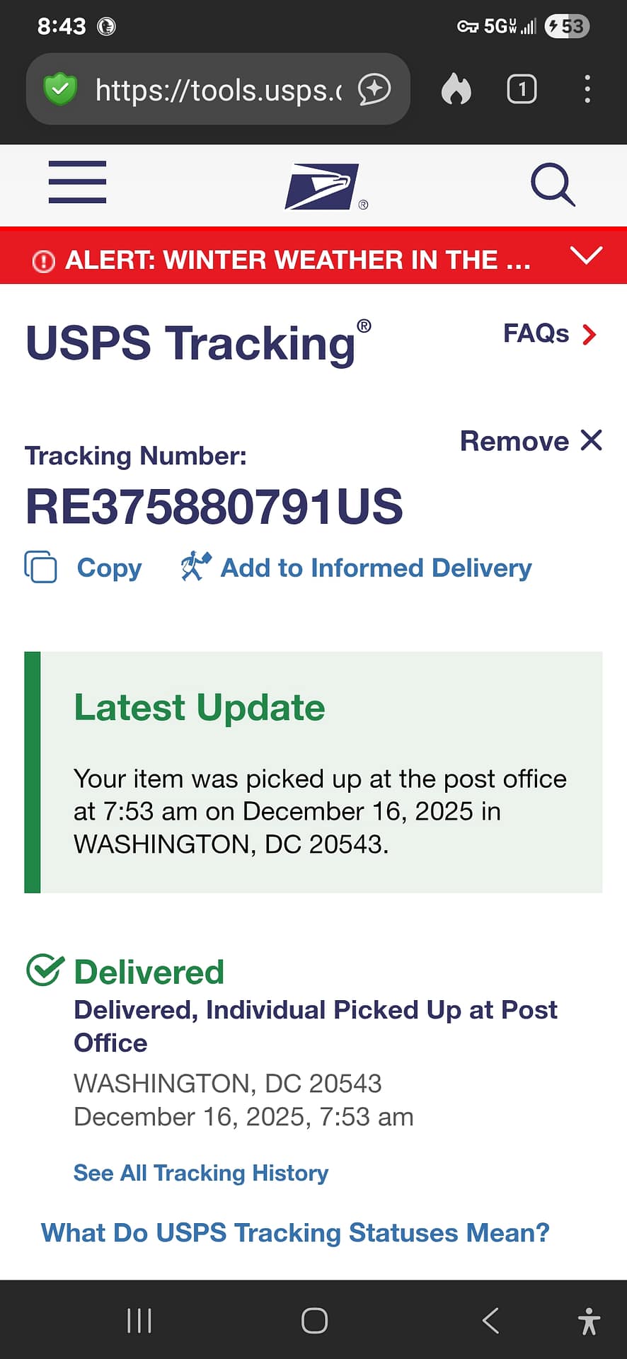 Certified Mail Delivery Confirmation – Delivered: JANUARY 6, 2025 (Click Here)